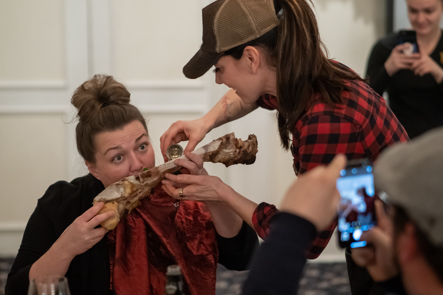 The real kicker came tableside, when Connie, John, and I moved through the room pouring small shots of Jack Daniel’s directly from the bone marrow into guests’ mouths—an unexpected moment of surprise, humour, and shared delight.